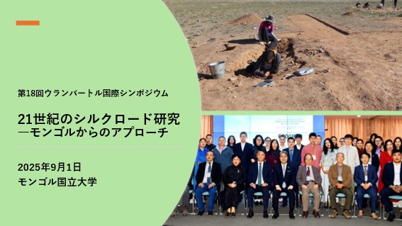 第18回ウランバートル国際シンポジウム「21世紀のシルクロード研究――モンゴルからのアプローチ」は、2025年9月1日、モンゴル国立大学図書館502会議室で対面とオンライン併用の形で開催され、100 名ほどの研究者と学生等が参加した。渥美国際交流財団関口グローバル研究会(SGRA)と昭和女子大学国際学部国際学科、モンゴル国立大学科学カレッジ歴史学科の共同主催、在モンゴル日本大使館、昭和女子大学、公益財団法人渥美国際交流財団、モンゴルの歴史と文化研究会の後援、日本私立学校振興・共済事業団学術研究振興資金、公益財団法人守屋留学生交流協会の助成をいただいた。