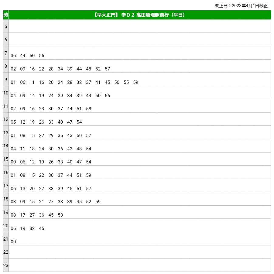 都巴士 学02 (学巴士) 高田马场站 – 早大正门